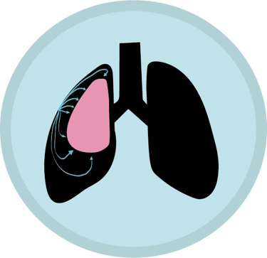 Se acumula líquido alrededor del pulmón, lo que impide que el pulmón se expanda bien y dificulta la respiración